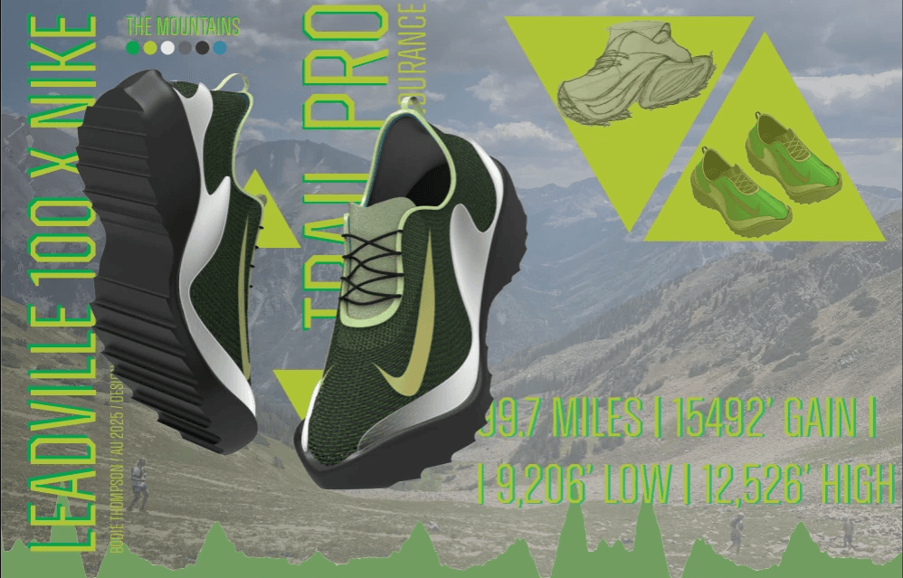 A pair of trail running shoes designed for the Leadville 100 ultramarathon In collaboration with Nike.